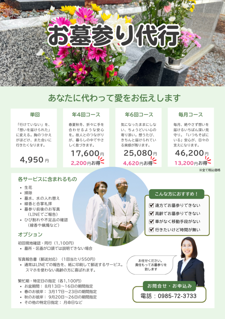 プラントサービスでは、スタッフが毎月必ずお墓参りに行きます。