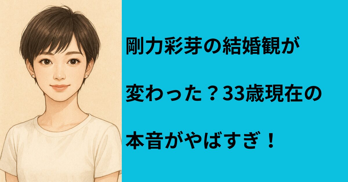 このように剛力彩芽さんの結婚観は、年齢とライフステージの変化とともに柔軟に変化しており、現在は現実的で前向きな結婚観を持っていることがわかります。